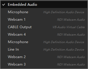 Unterstützt USB-Kameras, Decklink, NDI, Streaming-Medien, Z-CAM, Telefon-Bildschirmübertragungen und Windows-Audioeingabegeräte.
